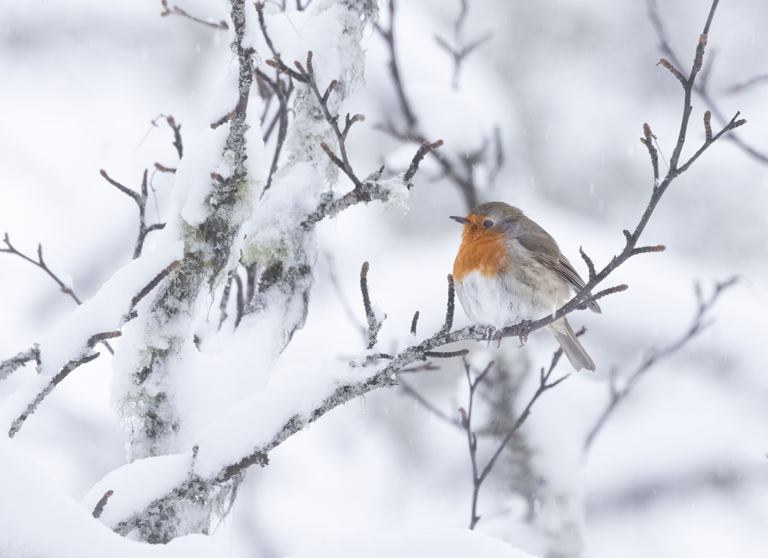 Rødstrupe i vintermiljø |